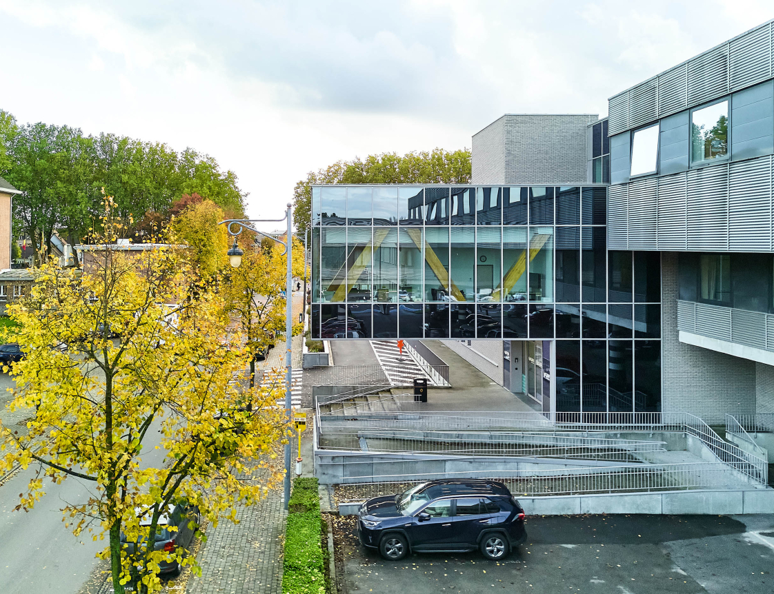 The project consists of the construction of a new wing of the Epicura Hospital in Ath, which houses the dialysis department and a large part of the consultation offices. The building has a total surface area of more than 5000 m² divided into a complete basement, a ground floor, a ground floor+1. Ground +2 is only created to make connections with the existing building. This extension attached the existing building to several different locations and different floors. The great difficulty of the project lay in the management of the subsoil and the foundations (high water table, low soil load-bearing, old fortification present).