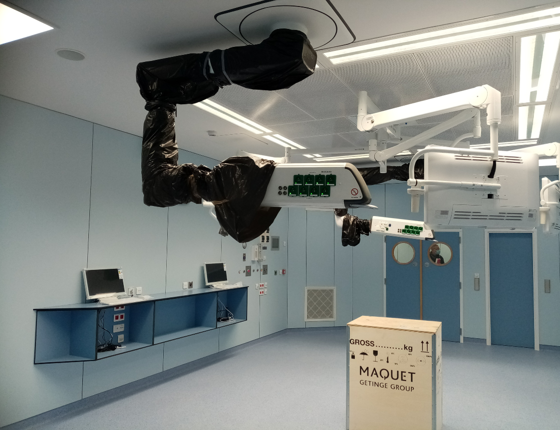 Renovation and extension of the operating theatre block. Building Services and Equipment: Electricity, medical fluids, heating, cooling, air-conditioning and plumbing.