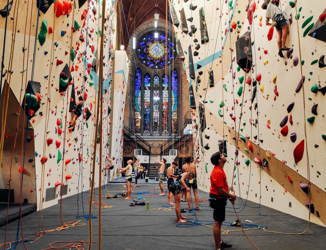 Etude de la stabilité et des techniques spéciales pour ce projet qui sort de l'ordinaire: réhabiliter les nefs centrale et latérales de l'Eglise Saint-Antoine de Padoue pour en faire une salle d'escalade tout en préservant le patrimoine. La salle peut accueillir jusqu'à 150 personnes et propose, entre autre, un mur de 18 mètres.
