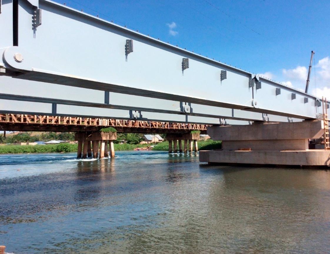 Construction d'un pont de 130 mètres de portée, sur le fleuve Lukuga. Structure mixte : métal - béton armé. Mission complète de conception et études. Entreprise : EGMF (Forrest). Pont terminé et inauguré en avril 2015.